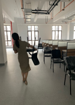 师范在过去一年从接洽第一批家具入驻到第二批新生入驻过程中全面负责创新港研究院现场后勤保障工作。疫情期间提前到岗协助创新港学生远程操作和检修电脑设备,确保学生科研不中断,安排创新港楼内卫生保洁,做好疫情期间的卫生保障和迎接疫情后师生工作的顺利开展。日常协调每一次家具设备厂商校内外接洽配货、搬挪及布置,与兴庆同事配合准备每次学校督察会议。紧密配合学院领导部署,与学校职能部门反复沟通准备装修资料和提交工程审核。2020年5月底创新港研究院首个施工项目开工,研究院三至八层紧锣密鼓开始了各项施工项目,包括地板铺设、隔墙改造、强弱电改造、房屋吊顶、灯具置换、消防改造等。