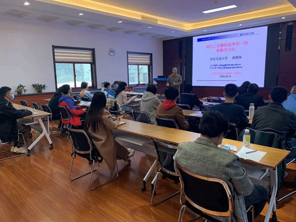 在导师报告环节,国家级人才计划入选者、领军学者蒋耀林教授向同学们介绍了现代工业模拟技术的三类新数学方法--波形松弛、时间并行和模型降阶,并介绍了三类新数学方法的适用领域和范围,以及在现代制造工业中发挥的重要作用。最后,蒋耀林教授扼要阐述了学习现代数学的必要性与重要性,同时给同学们指出数学学习首要是要领悟思想的建议。