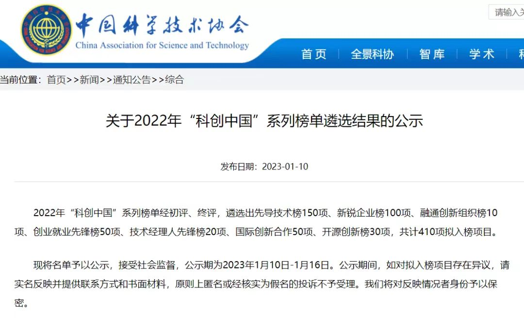 1月10日,中国科学技术协会发布“关于2022年‘科创中国’系列榜单遴选结果的公示”,经初评、终评,遴选出创业就业先锋榜50人,必赢唯一官方网站刘洋入选“科创中国”创业就业先锋榜(陕西共3人入选)。