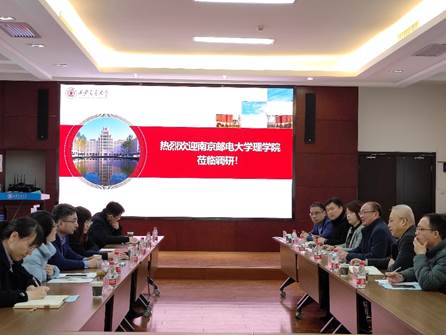 3月17日上午,南京邮电大学副校长王友国、理学院党委书记尹志丽、院长唐加山、副院长金正猛、信息与计算科学系党支部书记戴建新、信息与计算科学系副主任邵长国一行六人来我院调研交流。学院党委书记颜莉、院长孙建永、副院长易媛、副院长肖燕妮、祖建教授、高静副教授参加此次调研座谈。座谈会在数学楼2-1会议室召开。