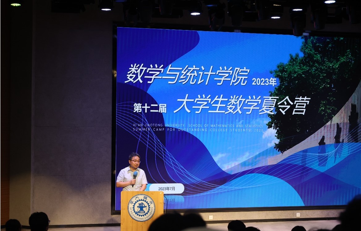 院长孙建永介绍了学院的学科建设、师资力量、人才培养。他指出,交大数学底蕴深厚、源远流长,学院始终坚持“科学问题导向,应用问题驱动,强化学科交叉,突出应用特色”的发展道路,聚焦数学与信息技术、地球探测技术、流体力学、生命科学、大数据、经济与金融等领域的交叉研究,取得了一系列重大成果,逐步形成一批具有特色的科研创新团队,学科实力显著提升。此外,学院坚持以培养交叉应用型数学人才为目标,对标国际标准,构建一流人才培养体系。最后,预祝本届夏令营顺利举办。