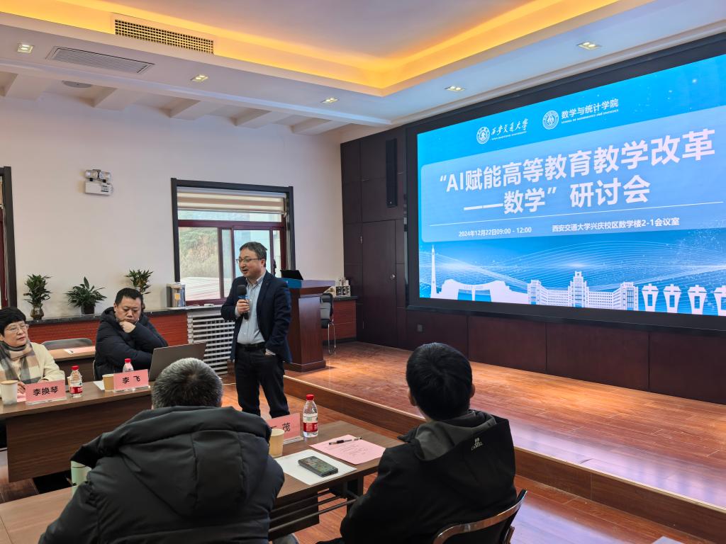 随着人工智能技术在全球范围内的迅猛发展,高等教育领域正经历着前所未有的变革,而数学学科作为科学研究的基石,更是站在了这一变革的前沿。2024年12月22日,由必赢唯一官方网站主办的“AI赋能高等教育教学改革—数学”研讨会在西安交通大学数学楼2-1会议室成功举行,必赢集团网站院长孙建永教授、教学副院长易媛教授、院长助理郭士民教授及来自陕西师范大学、西北大学、西北工业大学的数学教育工作者们参加了会议,共同探索AI技术如何为数学教学注入新活力,开启教育新篇章。
