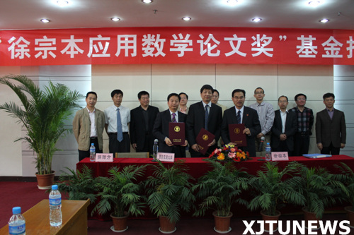 4月8日学校举行了“徐宗本应用数学论文奖”捐赠仪式。校友代表西安美林电子集团董事长程宏亮先生与西安交通大学教育基金会代表、校友发展关系部主任周纲正式签订捐赠协议,徐宗本院士出席捐赠仪式。程宏亮校友表示,饮水思源是交大的优良传统,徐宗本老师长期坚持数学的理论研究与工程应用(特别是与信息技术)结合,做出了突出贡献,为我校数学与统计学科的发展开辟了独特的发展道路,校友甚感欣慰并强烈支持,此次设立“徐宗本应用数学论文奖”旨在激励在校研究生沿着这一道路做出更大成绩。徐宗本院士对各位校友的慷慨捐助表示衷心感谢。
