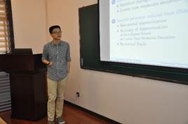 联合研讨会期间,双方青年学者及博士生分享了他们最新的研究工作,并就共同感兴趣的问题进行了热烈的讨论与交流。香港中文大学统计系师生的报告主要围绕概率极限理论、高维统计推断以及生物统计学三个方面,探讨了局部统计量的和的渐近分布以及中偏差理论等,还涉及高维变量选择、大数据聚类和贝叶斯分位数回归分析等高维统计推断方法,并介绍了生物基因学中的统计分析研究中的新进展,展示了统计理论在交叉领域中的应用。我院师生代表也就会议主题给出了关于机器学习、压缩感知等方面的报告,介绍了机器学习领域中的最新研究成果,探讨了其涉及的统计研究方法。