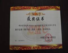 必赢集团网站数学试验11班学生刘永杰作为我校唯一主力队员进入陕西赛区代表队参加全国决赛。本次决赛共有来自北京大学、清华大学、中国科大及西安交大等全国150多所高校的278名同学参加,22名选手获得专业类一等奖,刘永杰同学喜获数学专业类一等奖,列位第7名。