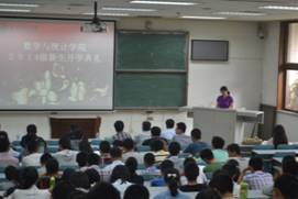 接下来,学生处处长尚春阳教授对新生进行了勉励。他教导新生要立大志、做大事,将自身发展与国家发展结合在一起。同时,他也从自身的经验和经历强调了数学学科的重要性。