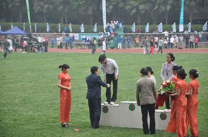 2013年4月19日,西安交通大学第51届运动会盛大开幕。尽管当天刮着凉风,下着雨,八点半运动会照常召开。一如往年,首先开始的是各书院,研究生院,学校各组织的代表方阵,他们穿着统一的服装,迈着整齐的步伐,在一声声嘹亮的口号中,走过主席台,接受校领导的检阅。我院院长彭济根老师、党委副书记易媛老师、院工会主席张永怀老师及学子代表队不畏风雨,身着蓝色的衣服,手中挥舞着象征顽强的太阳花,铿锵有力地喊着“明德明智,实事求是,青春如火,超越自我,非比寻常,数学最强”的口号,迈着矫健的步伐,昂首挺胸,自信满满地走过主席台,那一刻,天不再阴冷,同学们激情澎湃,展现出我数学人的朝气蓬勃与精神风采。我院健儿团结拼搏、锐意进取,经过两天的激烈角逐,取得辉煌成绩,具体战果如下: