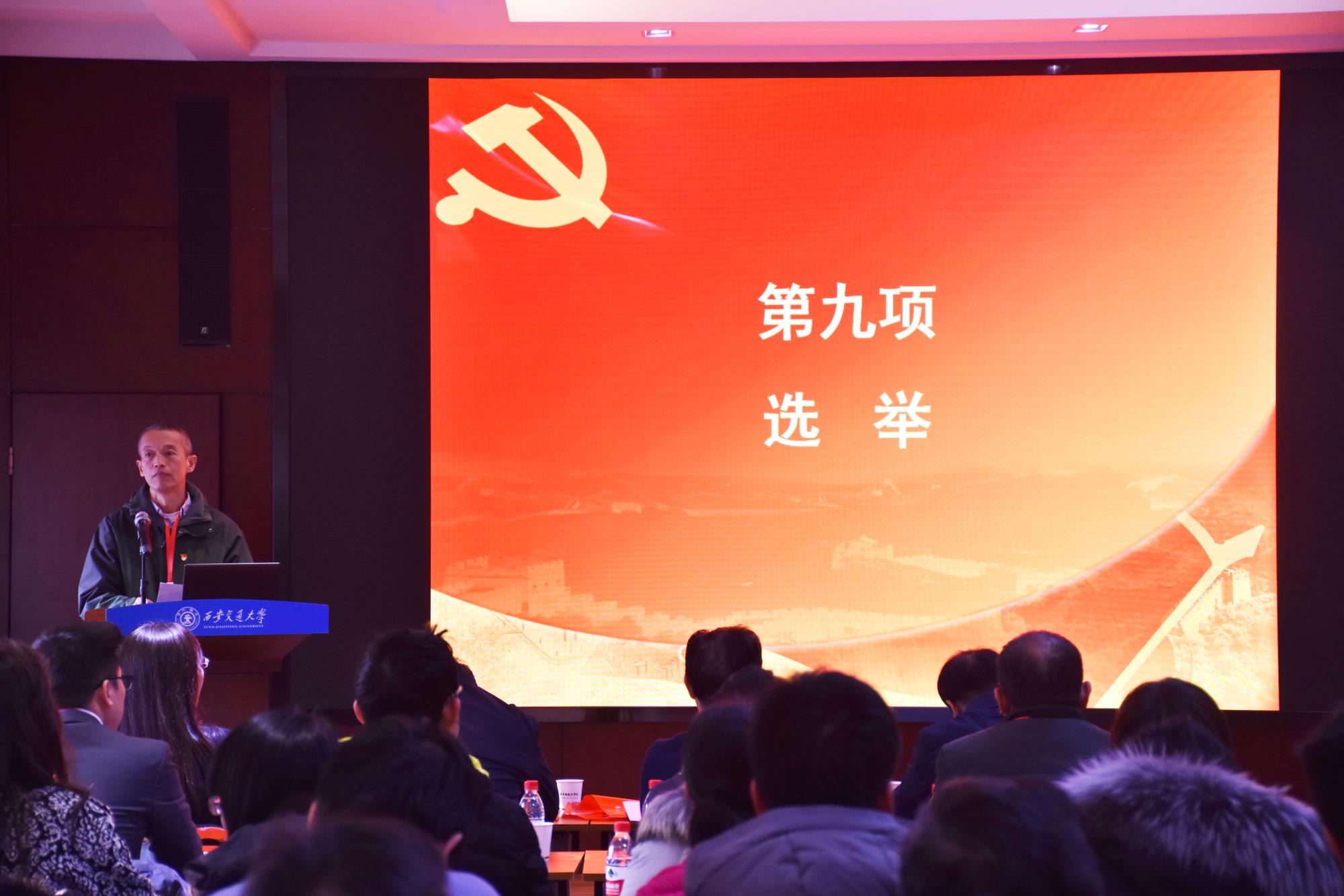校党委副书记宫辉同志代表学校党委向大会的召开表示热烈的祝贺,对学院上一届党委的工作和学院近几年来的发展成绩给予了充分肯定,并对新一届党委委员提出了三点期望。一是不断加强政治建设,充分发挥党委政治核心作用,团结和凝聚全院党员和师生围绕中心、把准方向,建强组织、凝聚人心,深化改革、推动发展。二是坚持立德树人根本任务,全面贯彻全国教育大会精神,把培养社会主义事业合格的建设者和接班人作为教书育人的出发点和落脚点,引导学生成长成才。三是加快推进一流学科建设和创新港内涵建设,加强学科布局顶层设计,狠抓班子建设和制度执行,打造高水平师资队伍,提高科学研究水平,丰富思想文化建设,不断推进学院各项工作再上新的台阶。