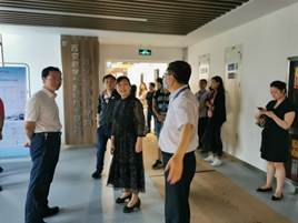 郑庆华副校长一行首先查看了已建成的研究平台使用情况和文化建设推进情况。基础数学研究所、华为-西安交大GTS创新实验室的研究生工位、教师办公室、会议室已投入使用。新建成的文化墙图文并茂地展示了学院、研究院各中心(所)的历史沿革、中心定位、代表性成果等内容,凸显了学院和研究院的发展历程及辉煌成就。