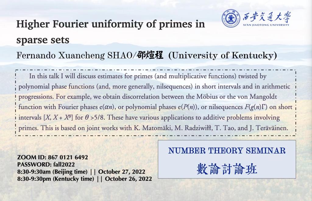 【数论讨论班】肯塔基大学邵煊程 (2022.10.27)