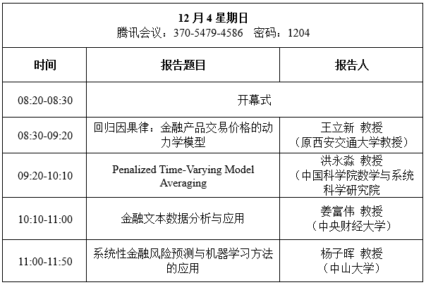 国家天元数学西北中心定于2022年12月4日-5日召开AI技术在金融预测中的应用前沿论坛。受疫情影响,论坛全程在线上举办。该论坛是国家天元数学西北中心“随机分析与量化金融”主题年活动之一,由西安交通大学徐宗本院士顶层设计,邀请普林斯顿大学范剑青院士、西安交通大学张讲社教授等共同组织召集。本次论坛邀请相关专家共同探讨人工智能(AI)技术在金融预测中的应用,介绍基于AI技术的各类经济指数分析与预测、大宗商品价格预测、各类证券衍生产品指数预测、金融市场行为分析,以及与之相关的金融技术分析工具和方法等的前沿研究成果,讨论人工智能时代的金融分析与决策的新问题、新模型和新方法,探索解决具有高度不确定性的金融预测核心问题,以期促进AI技术与金融分析方法的深度融合。