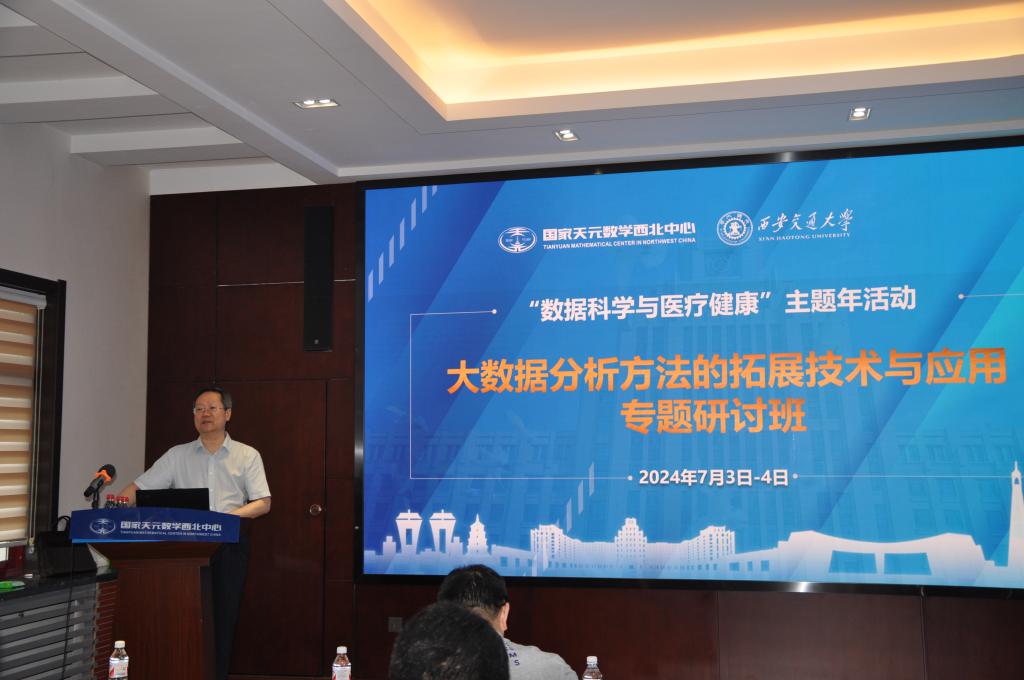 7月3日-4日,国家天元数学西北中心在西安交通大学成功召开了"大数据分析方法的拓展技术与应用专题研讨班"。本次会议专注于大数据分析方法的潜在技术延伸和应用,吸引了来自香港科技大学、南方医科大学、南京大学、浙江大学、首都师范大学、西安电子科技大学、兰州大学、青海师范大学、国网智能电网研究院有限公司等二十余所高校及科研院所的60余位专家学者参加。他们齐聚西安交通大学,共同分享知识,交流思想,深入探讨了与大数据分析相关的数学方法和技术工具。
