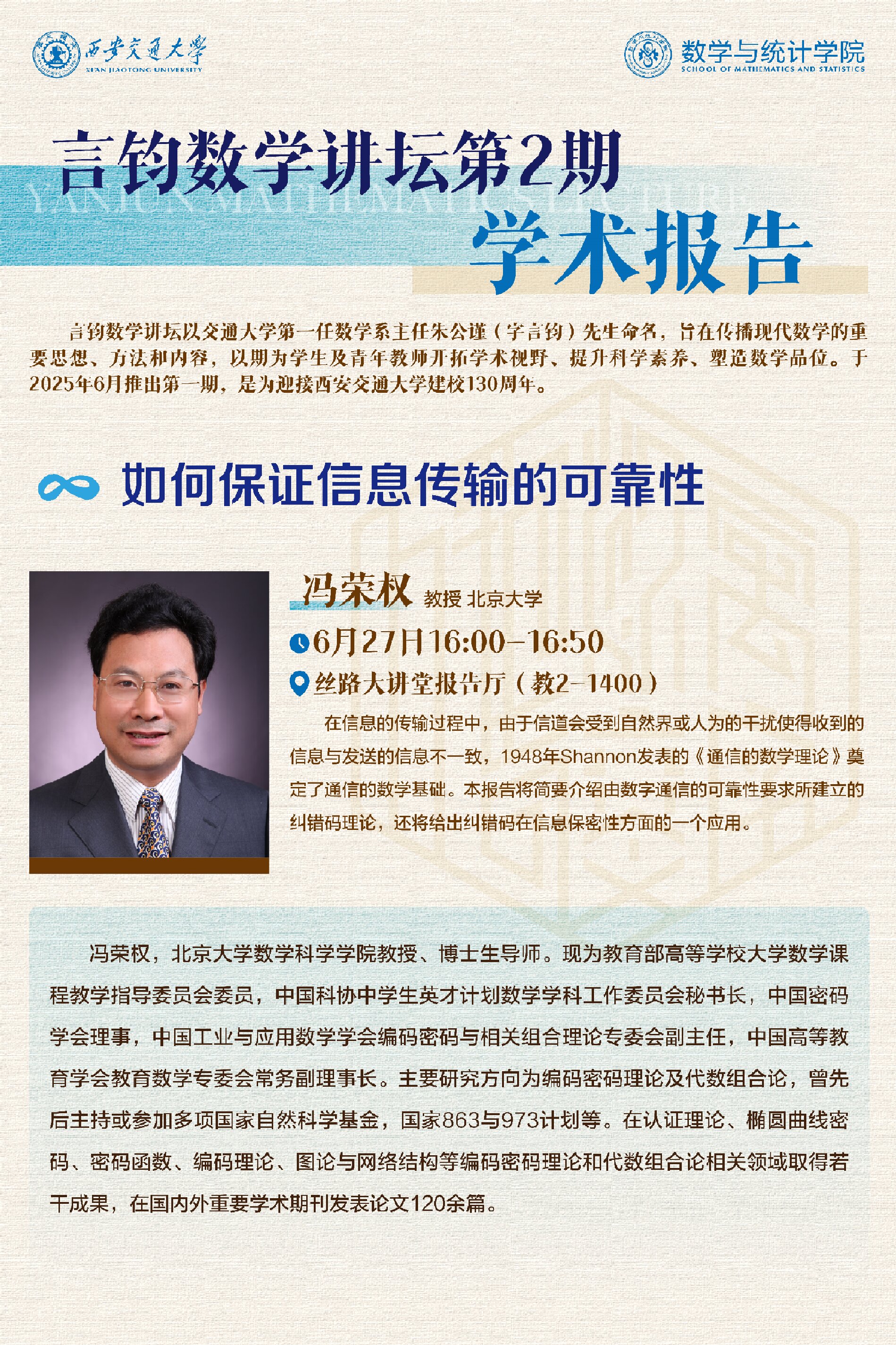 【言钧数学讲坛】浙江大学蔡天新教授、北京大学冯荣权教授学术报告通知