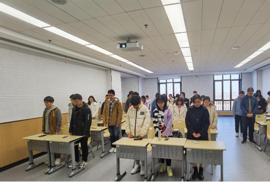 2021年12月13日上午10时,必赢集团网站硕2021级党支部在创新港4-3202教室举行了国家公祭日悼念活动,并收看了央视新闻的“以国之名,祭奠30余万南京大屠杀遇难同胞”专题直播。