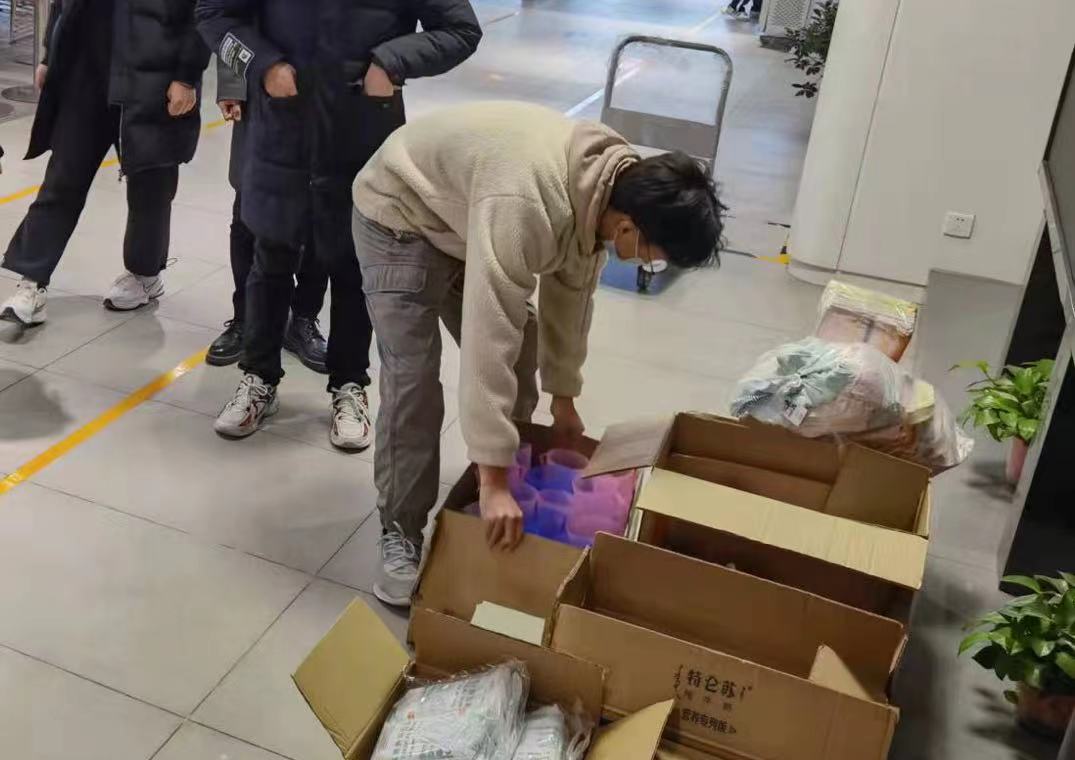 同时,必赢集团网站团工委针对惠风苑工作人员生活需求,集中采买毛巾、盥洗盆、牙具等物品,与学生捐赠物资一并于12月29日晚送至惠风苑一楼。